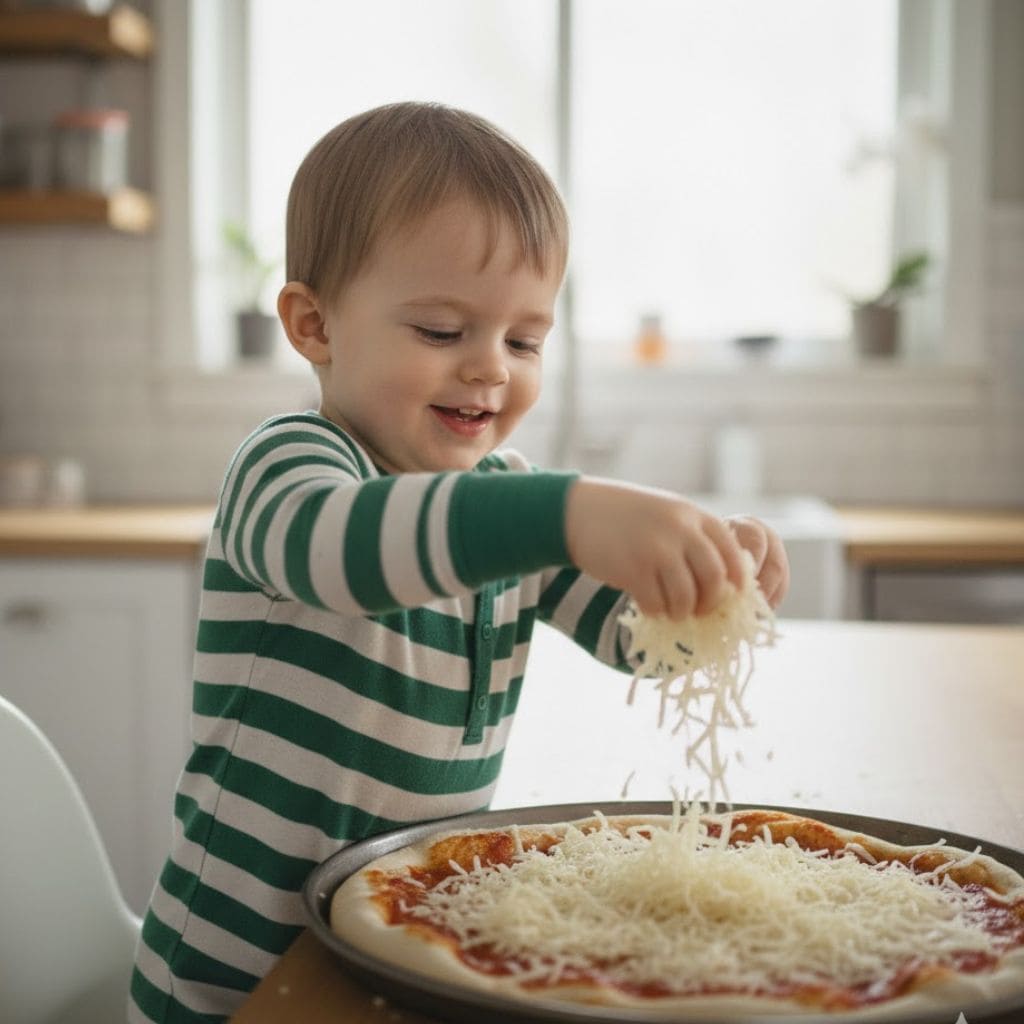 I supervise the stovetop closely, but I allow him to stir gently with a silicone spatula. The sizzling sound fascinates him every time.