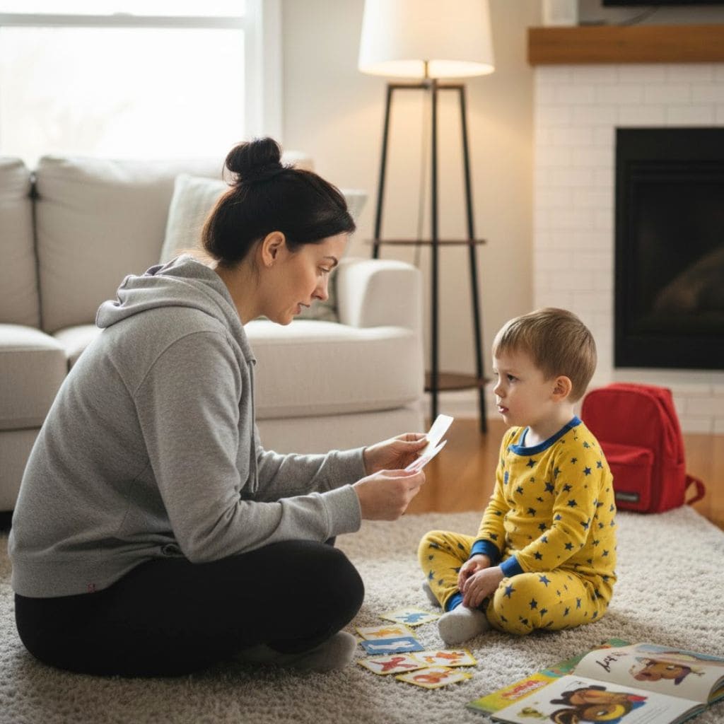 We would sit on the living room rug with flashcards and simple picture books. I exaggerated my pronunciation gently, then I encouraged him to slow down and repeat words clearly.