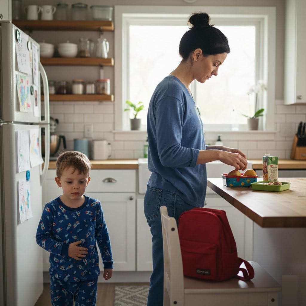 His face looked pale, and he pressed his small hand against his stomach. “Mommy, my tummy hurts,” he said softly.